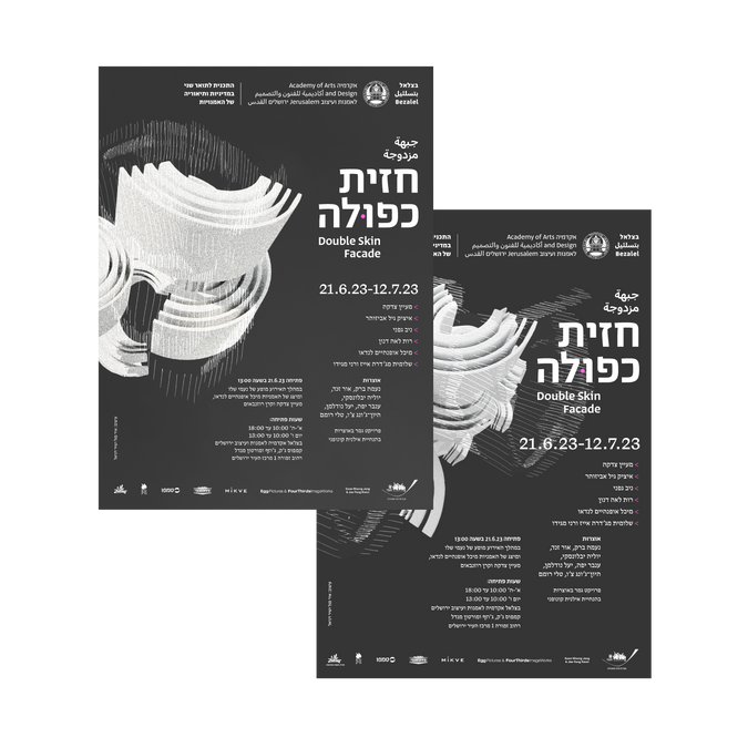 Visual identity for Double Skin Facade, the graduate exhibition of Bezalel’s MA program in curatorial studies.